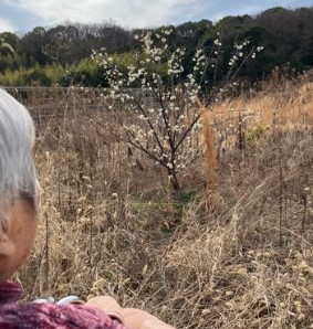 外の空気を感じながら歩いていると、小さな梅の花がきれいに咲いているのを見つけました。