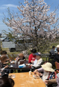 満開の桜の下、皆さんでテーブルを囲み、にぎやかなひとときとなりました。