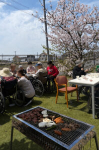 春の暖かい陽気の中、ホームの庭でお花見BBQを行いました🌸