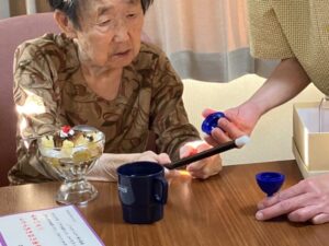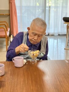 手作りパフェを食べながら