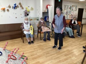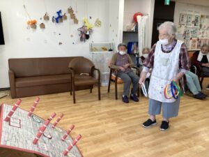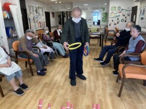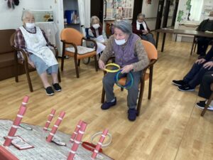 輪投げ大会やりましょうと始まりました~ 皆さんファイト!