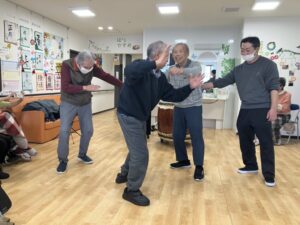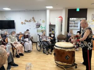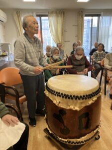 入居者様も太鼓打ちに参加させていただきました(^^♪