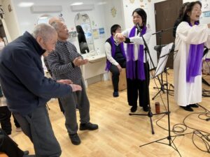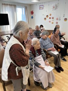 アメージンググレイスや恵みなどゴスペルの代表曲もあれば 上を向いて歩こうやふるさとなどおなじみの歌も唄っていただきました