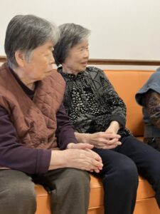 おやつを食べてる入居者様のもとへご挨拶 チラチラ見つつ…