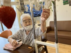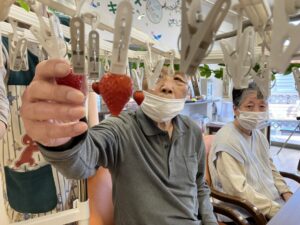 ホームではなんと洗濯ばさみに吊るしていちご狩り🥰
