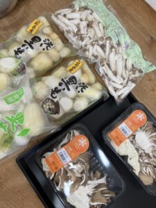 材料は、里芋・牛肉・こんにゃく・ごぼう・葱と様々ですが、キノコ類も入れて煮込む事で