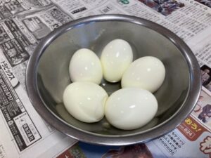 ついでに申しますと↓の卵は↓の↓のつるんとピカピカのゆで卵になりました