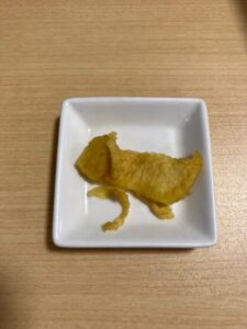 ↓の漬物の写真ですが、ある入居者様が食事中に「ワンちゃんがいる!」と発見したものです
