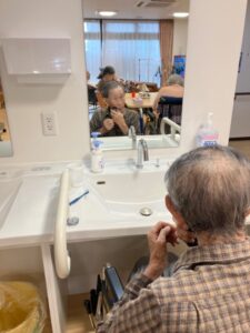毎朝、髭剃りをお願いすると鏡を見ながら整容されます