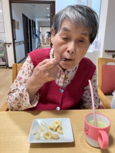 ゼリー(きな粉添え)も「甘くないなぁ~」と感想を言われつつ完食!