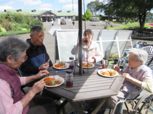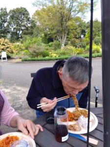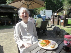 景色の良い、青空の下でみんなで食べる食事は格別です!