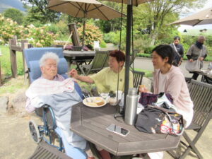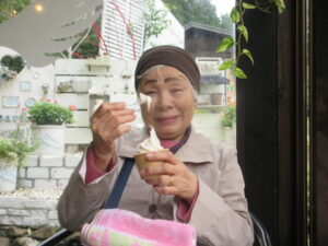 食事が終わり、おふたりの入居者様が「ソフトクリーム食べたい」と