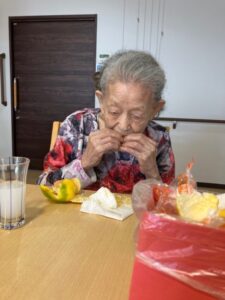 途中、寝ているS様の居室に入り「ばあちゃん、元気?」と声をかけてくれていました