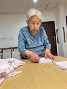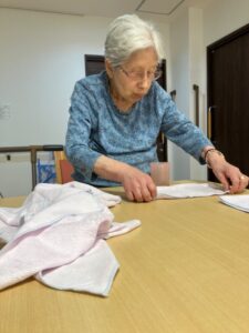 F様は、顔拭きタオルを綺麗に四つ折りに畳んでくれます