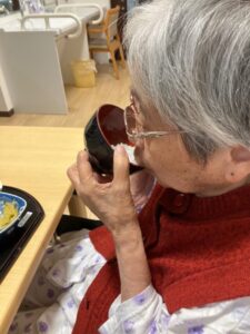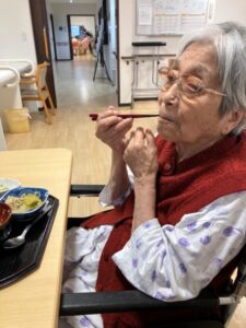 体調を崩されていたS様ですが、久しぶりにお箸を持って自分でご飯を口に運んでくれました