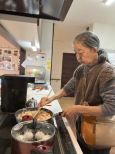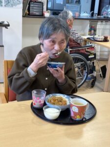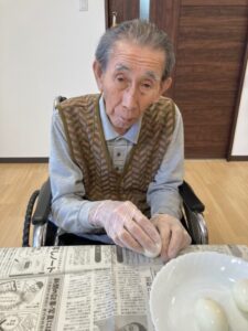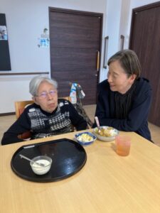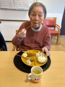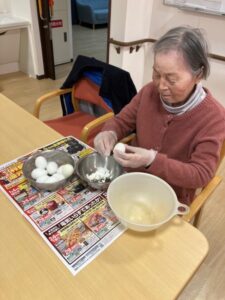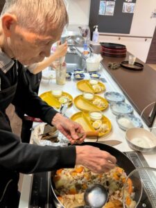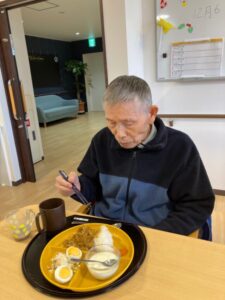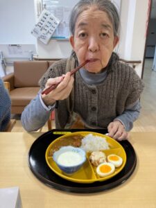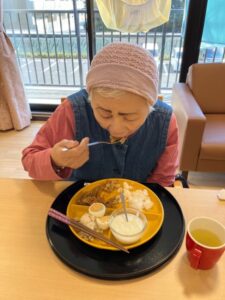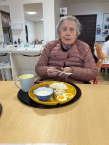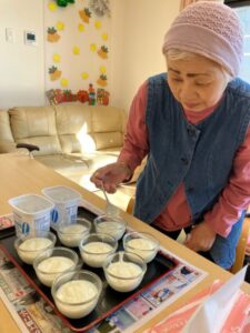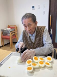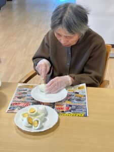 他の方にも、ゆで卵の殻剥き、カット、ヨーグルトをよそっていただいております