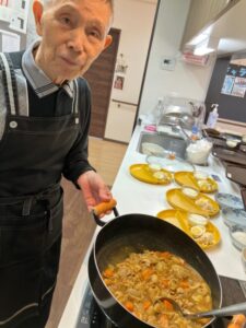 野菜の皮むき、カット、炒め、Y様お願いします!