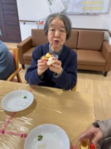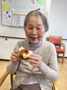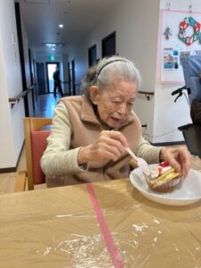 歌が終わり、クリスマスらしくケーキ食べますよ~
