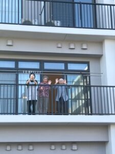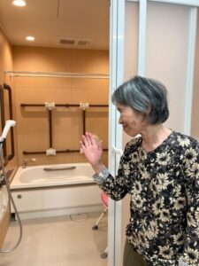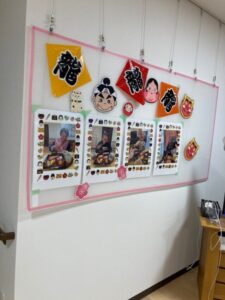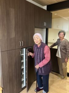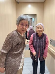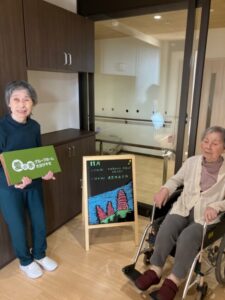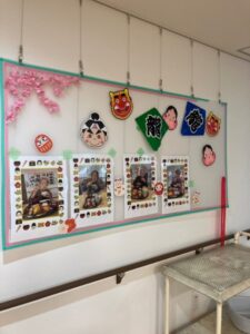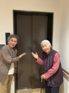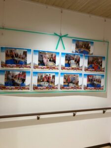 一階のエレベーター乗り場前に、入居者様との思い出の写真を展示しています