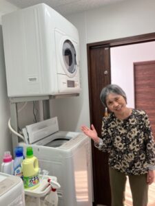 廊下をさらに奥へ進むと、洗濯機と乾燥機が置いてあります