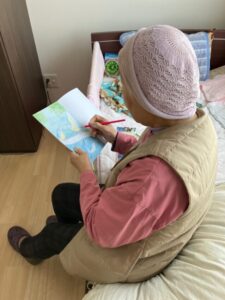 塗り絵をしているK様のお部屋にお邪魔しました(^_^)