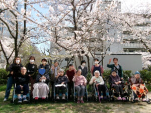 今年はユニットを分けての実施になりましたが、誰一人かけることなく入居者様全員がお花見をできたことをうれしく思います。ありがとうございました!