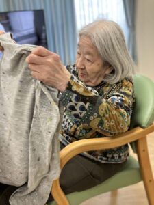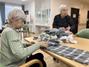 まずはフロアにて、みんなで 洗濯物たたみ !