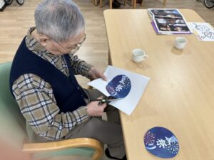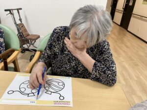 夏祭りに向けて皆様と一緒に 水風船やハッピの塗り絵 を行いました🖍️🎨