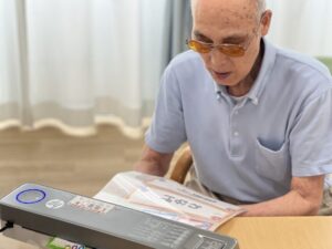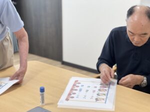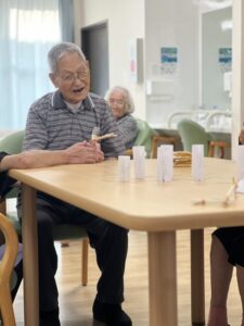 完成した的を使って、男性入居者様がさっそく 試し打ち🔫!