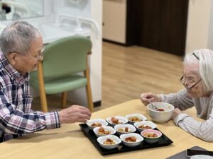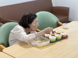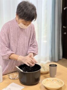作業の様子を見ていた奥様も「私もやってみようかしら」と笑顔で参加され、仲良く一緒に盛り付け✨💕