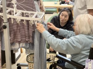 座ったままでもしっかりと手を動かして、洗濯物を一枚ずつ丁寧に干してくださいました👏