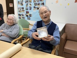 ホームにて皆さまと一緒にお渡しし、改めて百寿(ひゃくじゅ)のお祝い🎉をさせていただきました🌸
