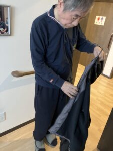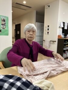 乾いた洗濯物をテーブルに広げて、皆さまで洗濯物たたみ👕👖を行いました✨