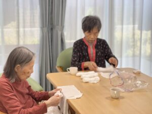 本日は女性入居者様お二人で、仲良く一緒におしぼり巻きを行ってくださいました🧺💞