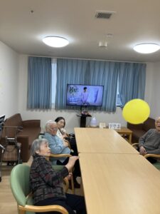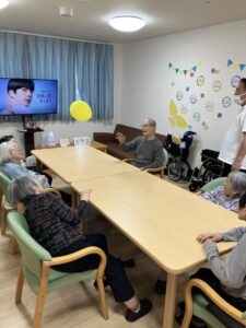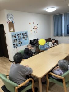 今日はフロアにて、みなさんで輪になって座ったままの風船バレーを行いました😊✨