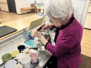 急須にお湯を注ぎ、みんなで飲むお茶をゆっくり時間をかけて準備してくださいました。