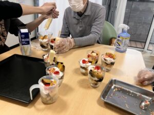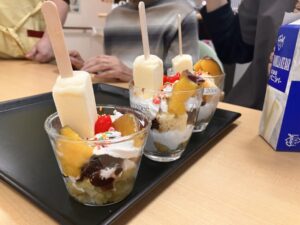 今回はひと口サイズで楽しめる ミニパフェ作り を行いました😊