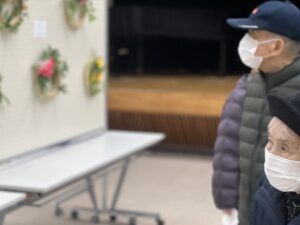会場には、地域の皆さんが心を込めて作られた編み物作品🧵や写真📷が並び、ご入居様も「ほぉ〜すごいねぇ」と熱心にご覧になっていました。