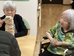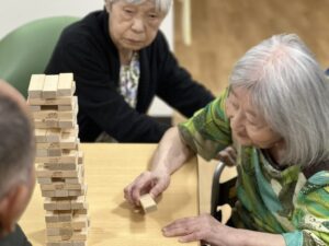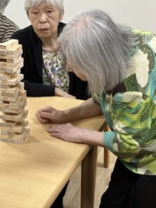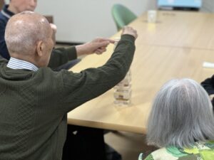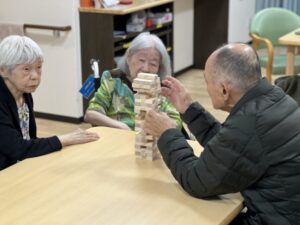 本日はフロアーにて、皆さまと一緒に ジェンガ遊び を行いました🎲✨