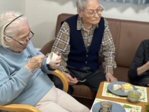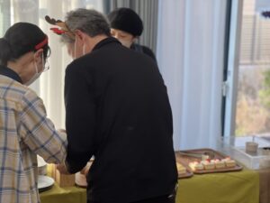 今回も移動販売のケーキ屋さん【ゆうちった】さんをホームにお呼びし、フロアにて皆さまそれぞれお好きなケーキを選んでいただきました。
