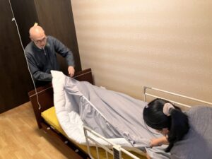 スタッフと協力しながら、シワのないよう丁寧に整えてくださいました。