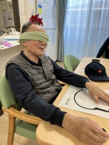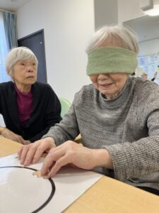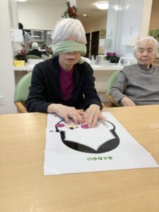 お正月ならではの遊びとして、フロアにて皆様と一緒に「福笑い」を行いました😊