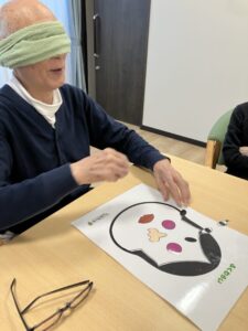 目隠しをして顔のパーツを並べていくたびに、「そこそこ!」「もう少し上!」と、周りからたくさんの声が飛び交い、自然と笑顔と笑い声が広がりました😄✨