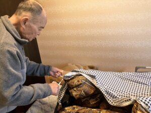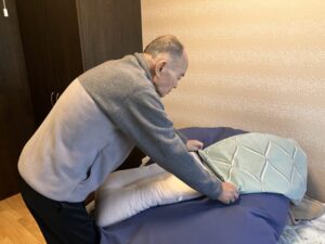 フロアにて、皆さまと協力しながら枕カバーの取り付けやシーツ敷き、布団カバーの取り付けを行いました。