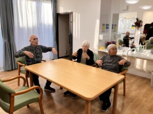 本日はフロアにて、皆さんと一緒に日課のテレビ体操を行いました。