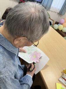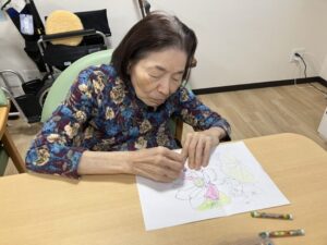 塗り絵では、色の組み合わせを考えながら丁寧に取り組まれ、「この色がきれいだね」と会話も弾んでいました😊
