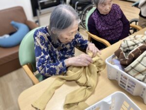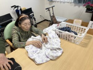 フロアにて、皆様と一緒に洗濯物たたみを行いました😊