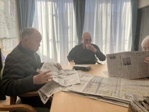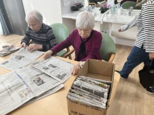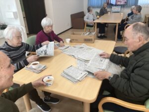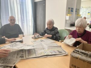 本日はフロアーにて、皆様と一緒に新聞折りを行いました✨