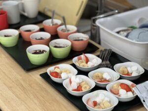 イチゴやバナナを丁寧にカットしたり、チョコレートを溶かしやすいように細かく刻んでいただきました🍓🍌🍫