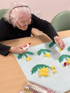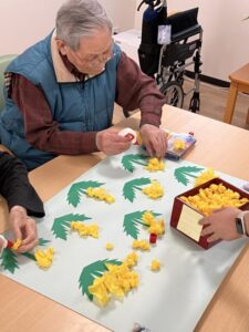 色とりどりの紙を丸めたり、画用紙に丁寧に貼り付けたりと、皆様で協力しながら進めています✂️✨